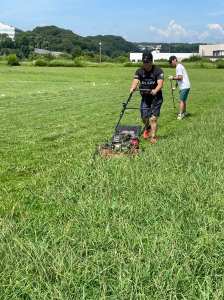 そこで八惑さん、河野塾などグラウンドを使っている団体が定期的に自主的に草刈りを行なっています。