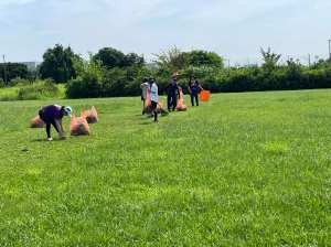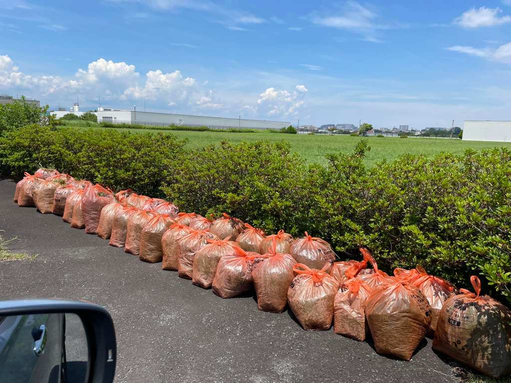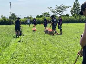 炎天下のなか保護者総出で取り組んだ結果、なんとか10時半ごろまでに草刈り作業を終わらせることができました。