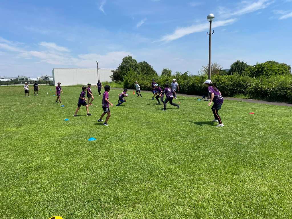 さらにその後高学年とタッチラグビーで対戦しているマミーズたち。