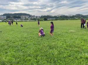 普段一緒にプレイしている高学年同士とは違い、低学年・幼児まで徹底するのは大変だったと思います。しかし、意図を伝える6年生にとっても、やってみた下級生にとっても良い勉強になっていると思います。