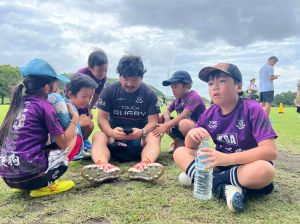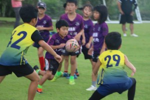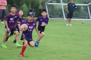 そこで今回は上級生の4人 アミ、アラタ、ナギサ、マサシに 相手にトライをさせなければ必ず勝てる!!その為には ディフェンスの時にボールを見ながら下がること、下級生のケント、イトちゃんにディフェンスの立ち位置の指示する事、2つの課題を伝え考え行動してもらいました。