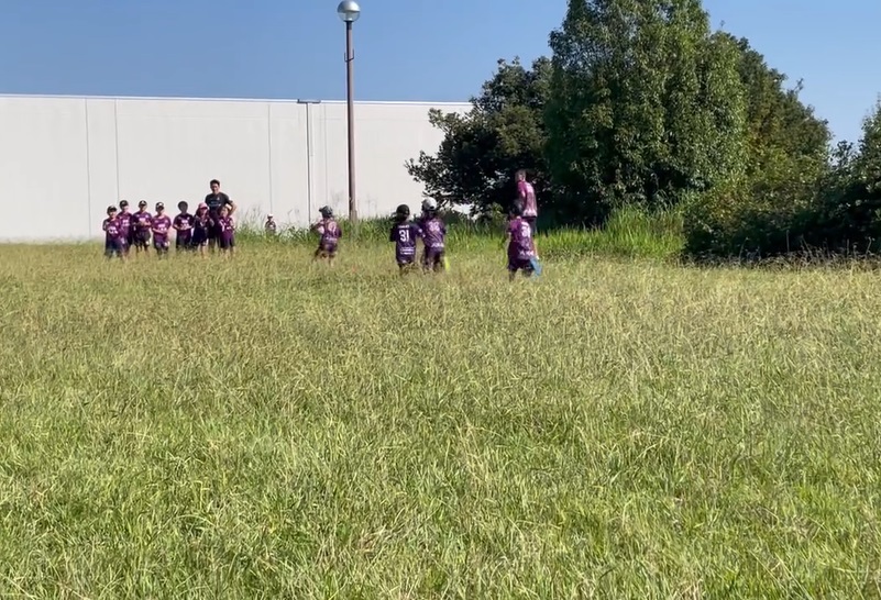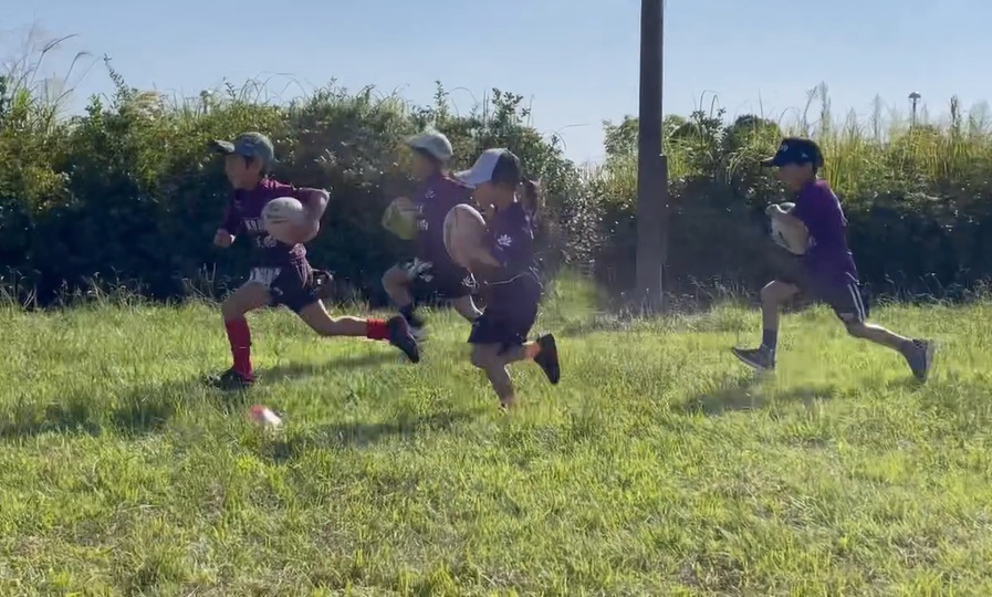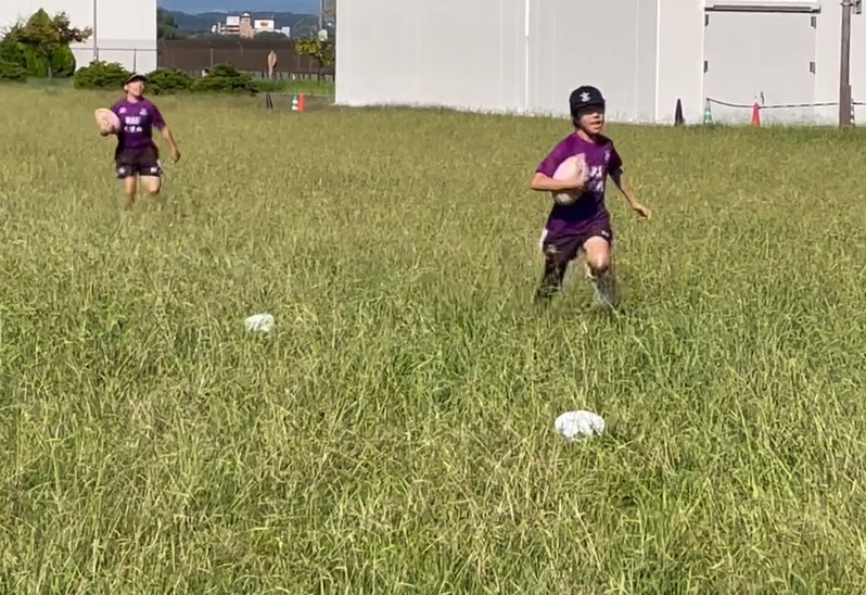 タッチラグビー用のコートのラインに沿って走ります。