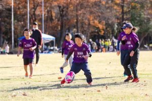 そんな中で、真歩ちゃん、健人くんの幼児2人が体格に勝るディフェンスを相手に「オオッ!」と思わせる走りをみせていました。相手チームのコーチが「幼児であんなにできるの