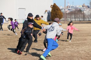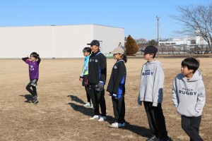 ウォーミングアップは加藤コーチから、子供たちに体幹やパワーポジションといった体の使い方を意識させてくれる内容でした。