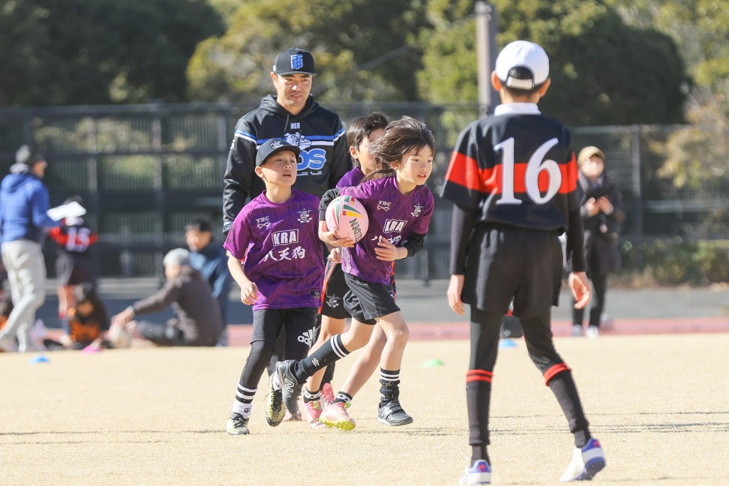 しばらくぶりに参加してくれたかい君は最後の試合に出場しました。 ラグビースクールで磨いてきたスキルを披露しトライまであと一歩という攻撃を見せてくれました