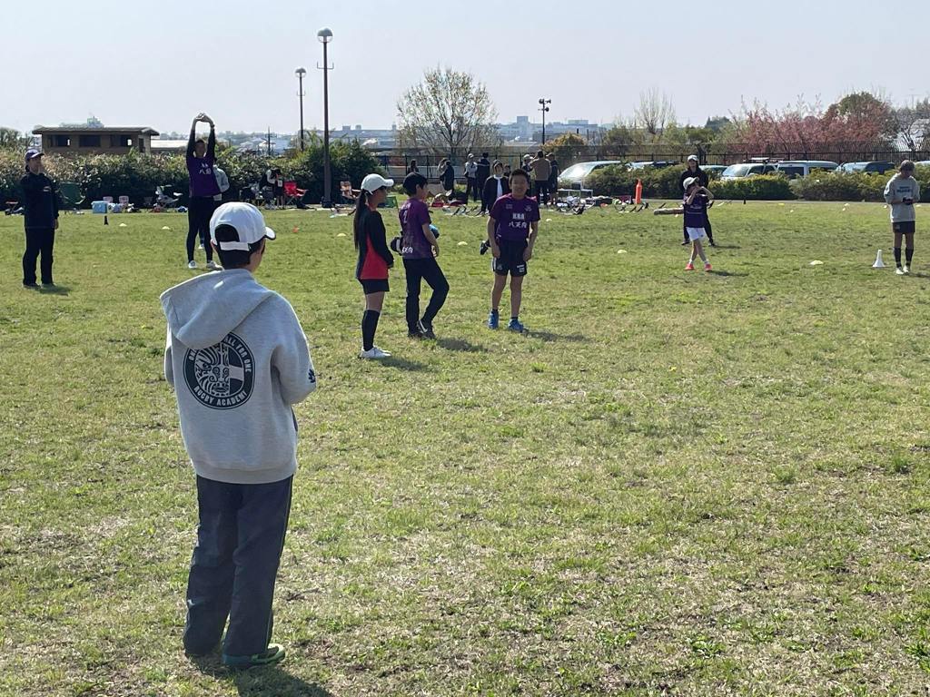 ウォーミングアップの風景です。新しい子や下の子を引っ張っていかないといけない高学年。