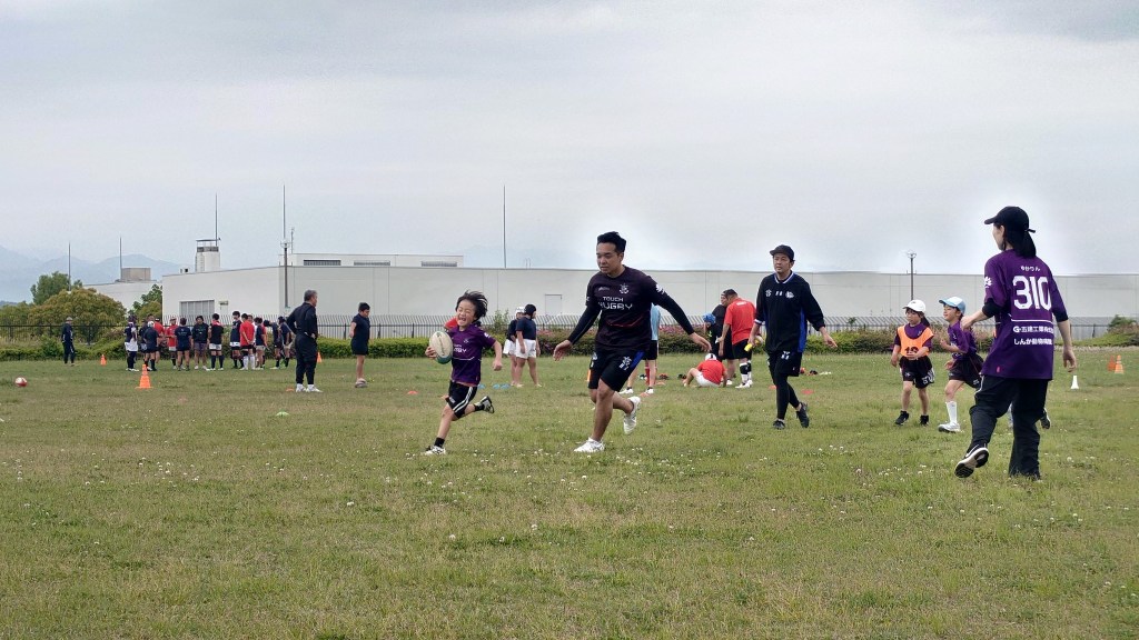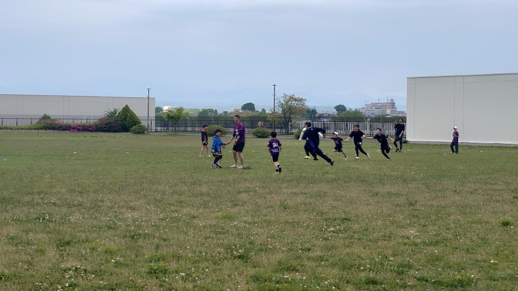 大人チーム 対 子供チームのゲームも行って上々の試合運び。加入して間もないリクトもすっかりルールを覚えて活躍。