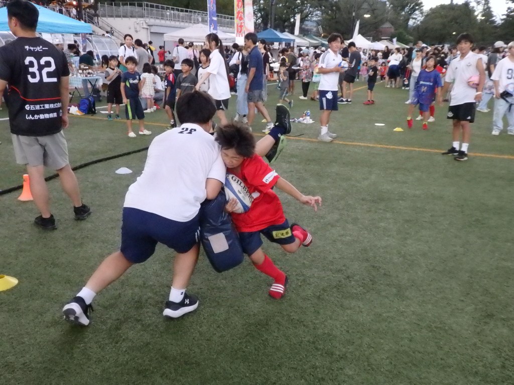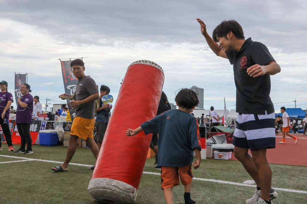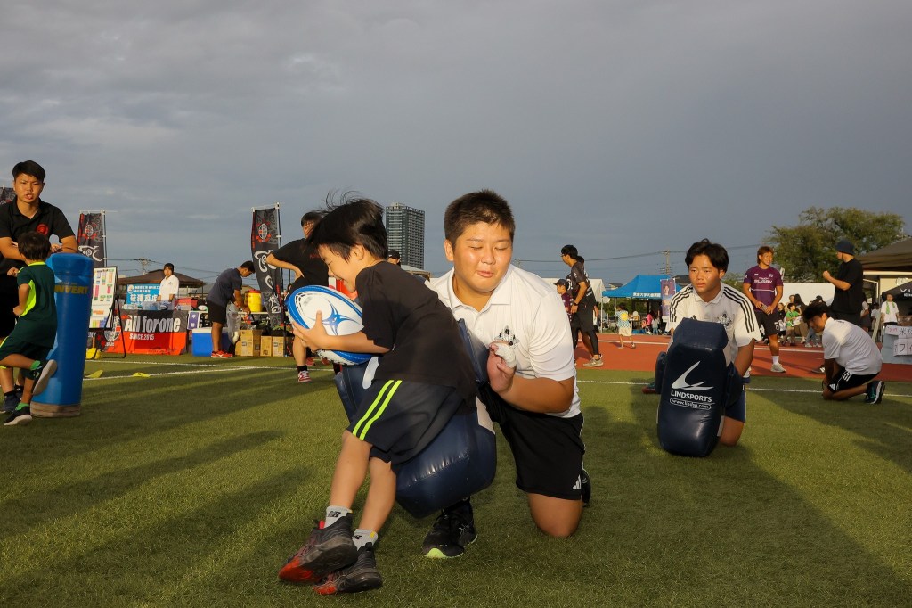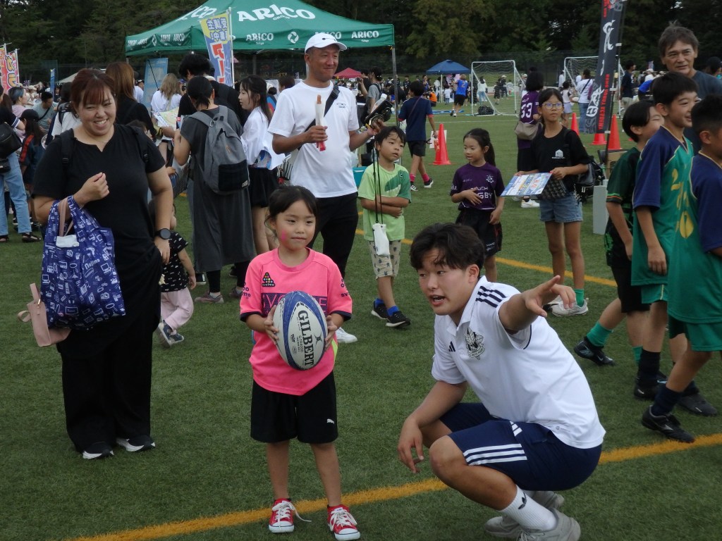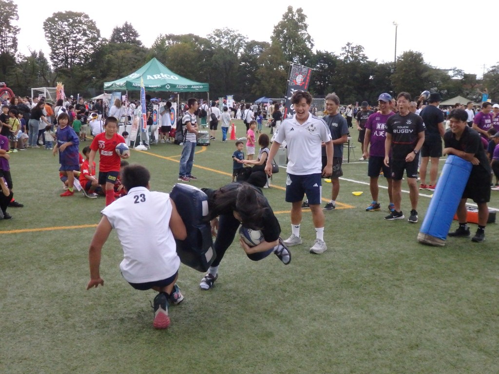 ラグビーに興味を持ってくれた子供に対しては生さんが積極勧誘を行い、サッカー少年1人をハチラグ入部希望まで繋げていました。