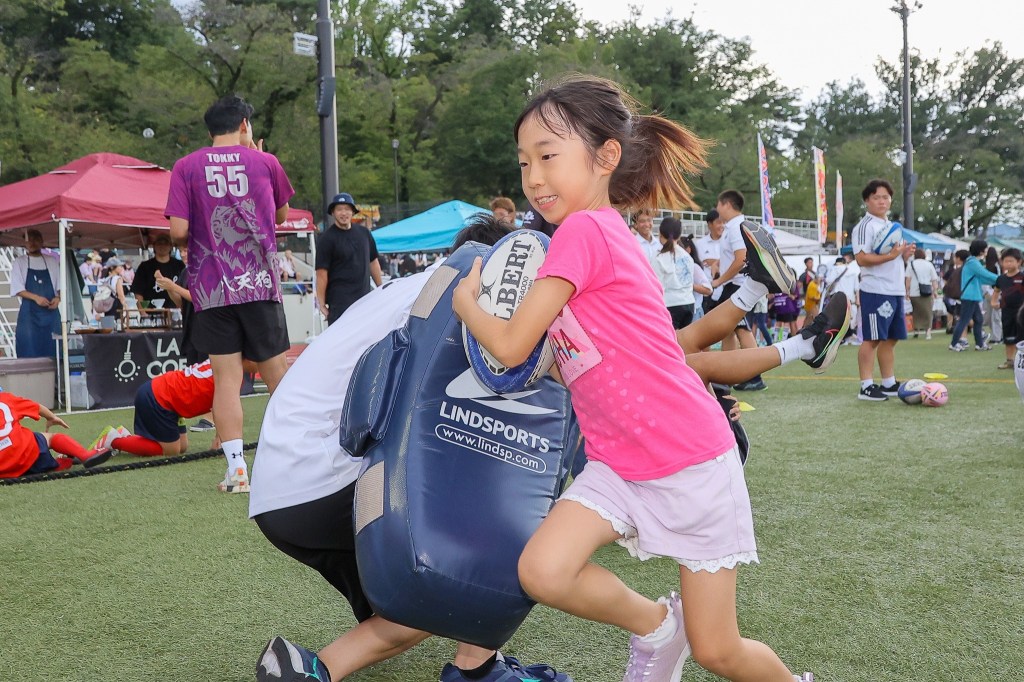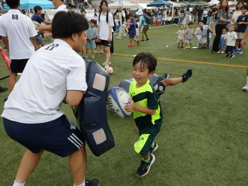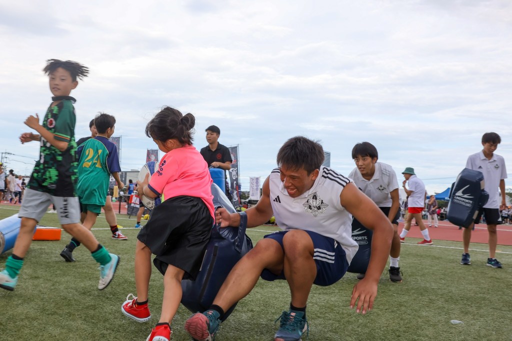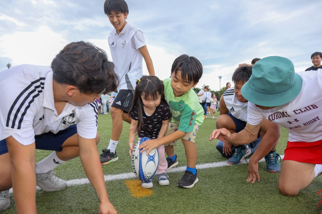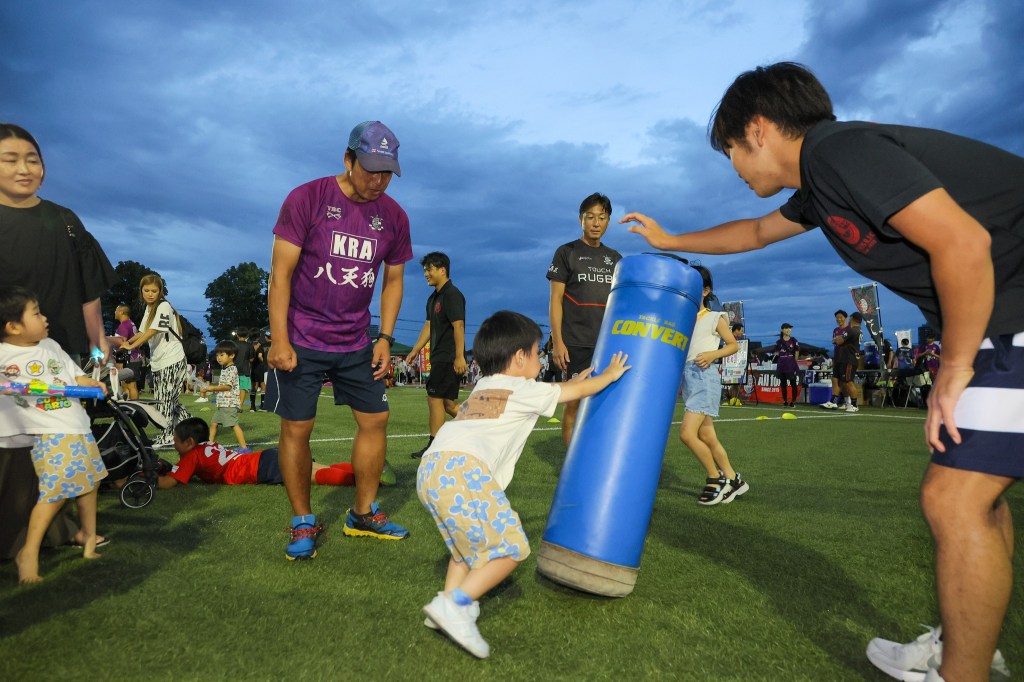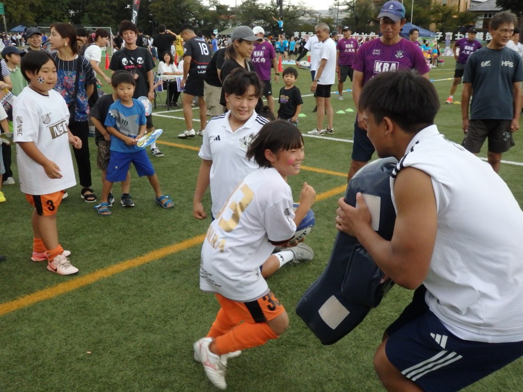 ラグビーに興味を持ってくれた子供に対しては生さんが積極勧誘を行い、サッカー少年1人をハチラグ入部希望まで繋げていました。