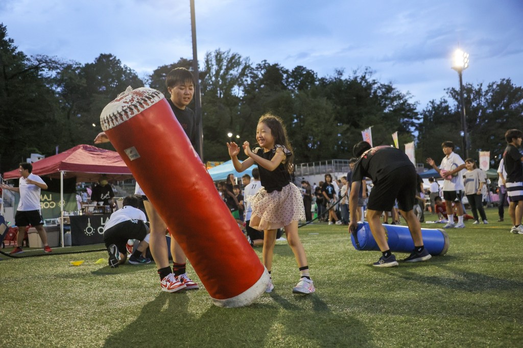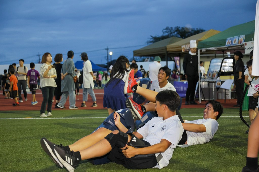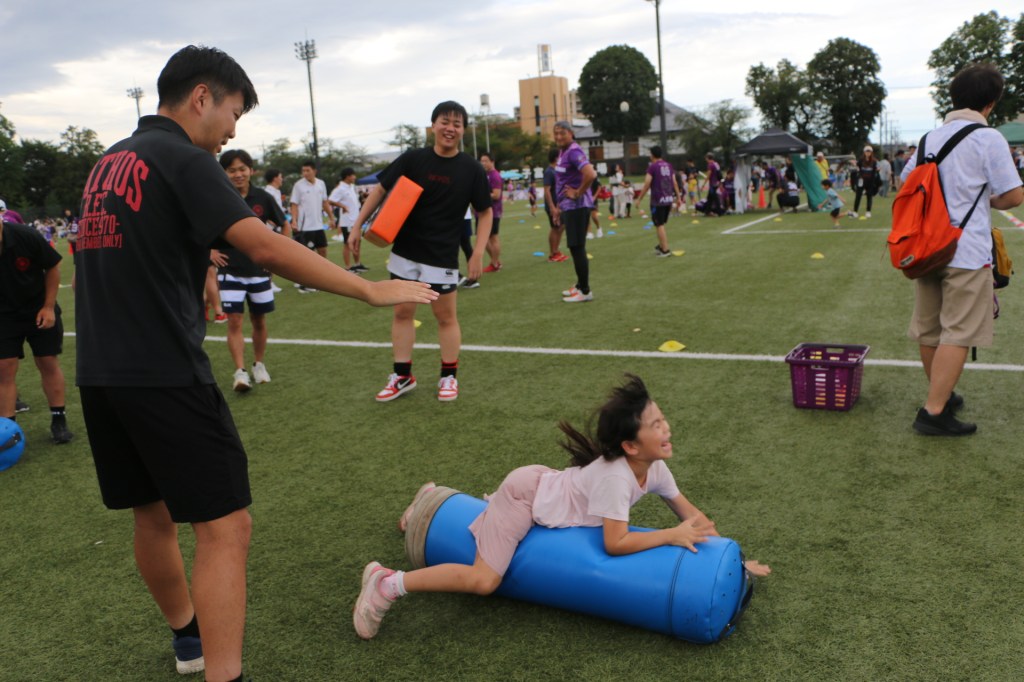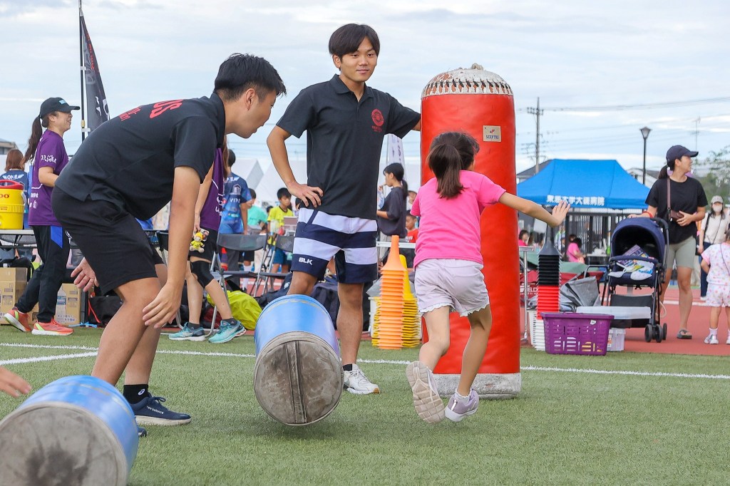 我々大人は声掛けや誘導等のサポート役中心でしたが、日大明誠さん、中大さんとも素晴らしい対応で盛り上げてくれて、子供だけでなく親やボディービルダー夫婦も楽しんでました。 特に日大明誠さんの大リアクション当たり対応は、小さな子供達のウケも良く、かなり盛り上げてくれてアゲアゲでした。女の子も楽しんでくれていました。