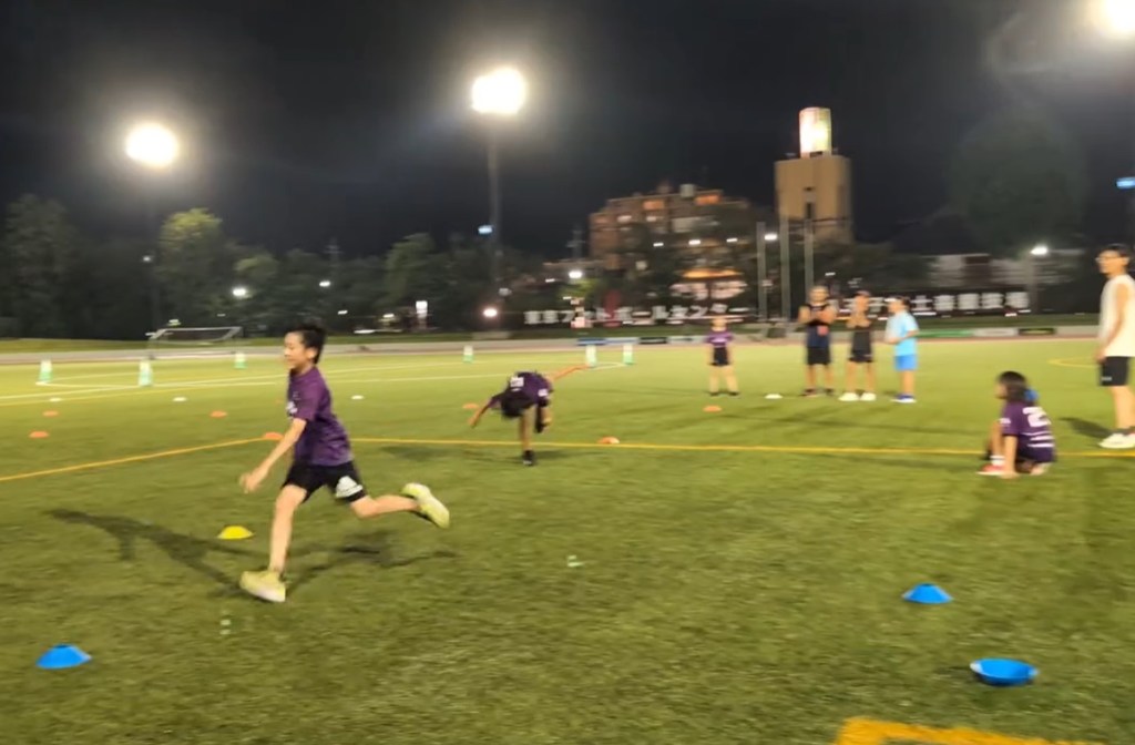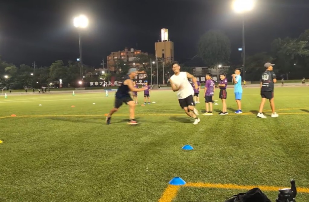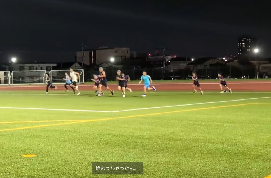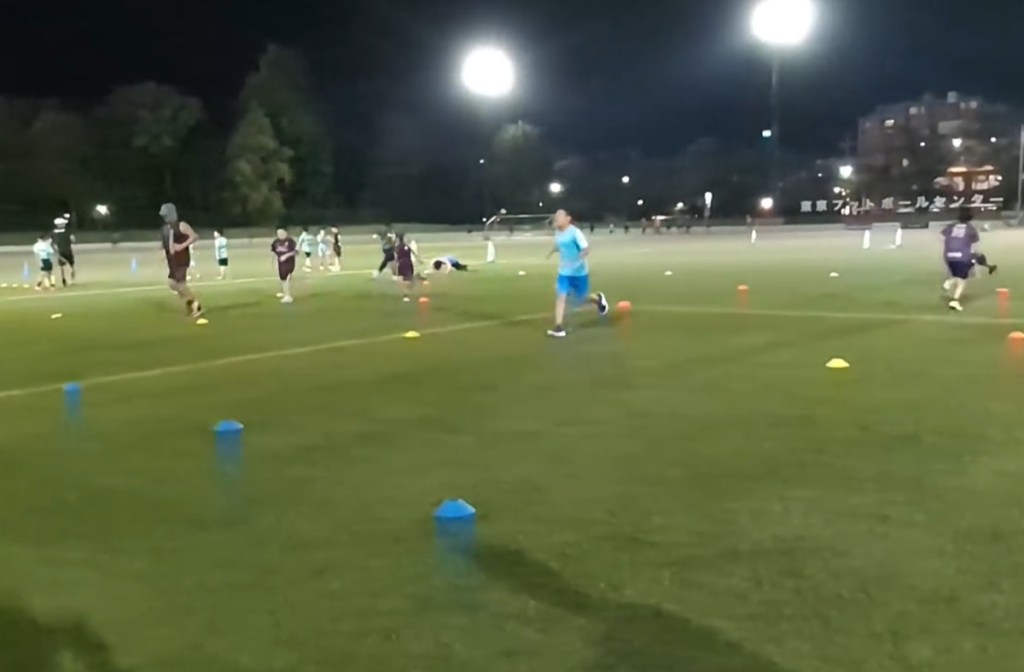 今日は、陸練メニューに加え、タッチラグビーの要素を取り入れたメニューが追加。