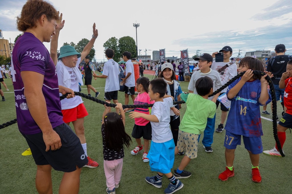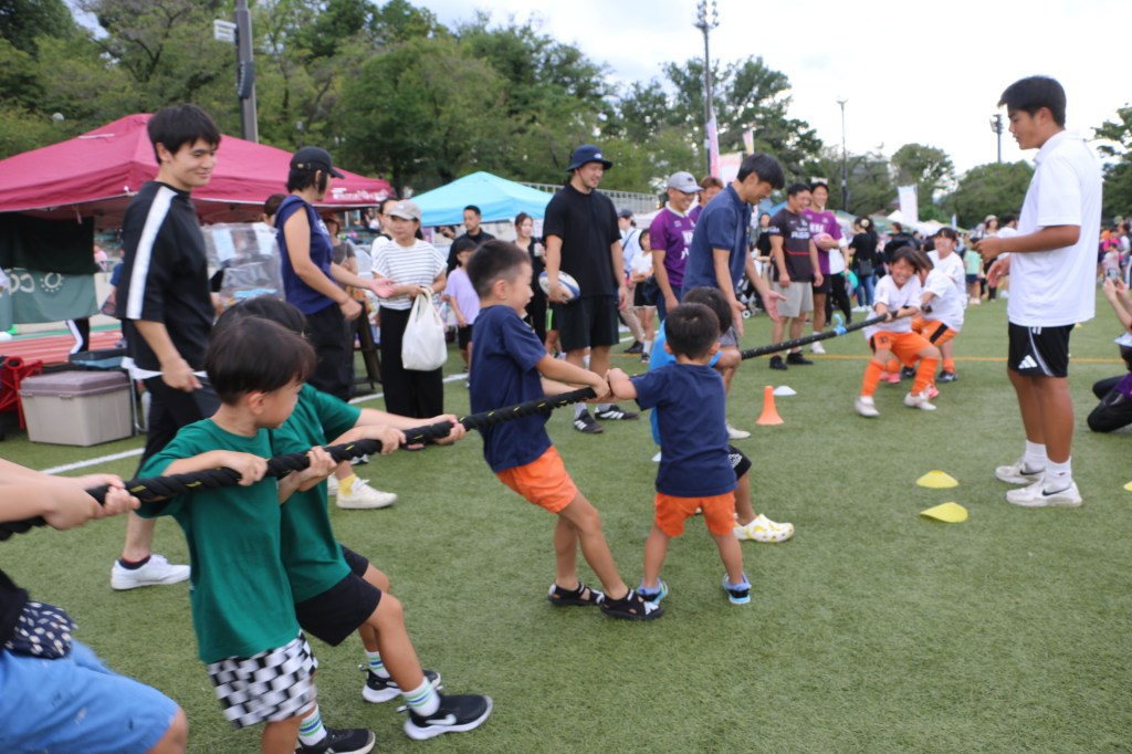引きブースは、日大明誠ラグビーメンバーや体力自慢の猛者達が気合い全開で子供達の相手をし続けてくれ、40オーバーの担当MENSはだいぶ楽できました笑。