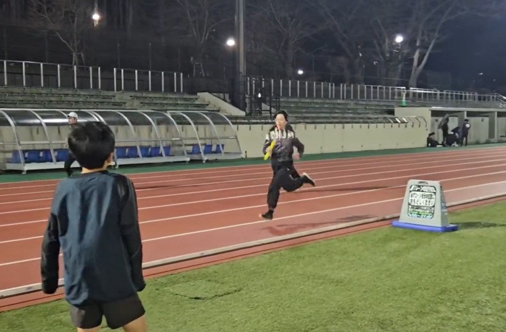 陸連リーダーの金子コーチがお仕事の為、塾長が代わりにコーチしました。