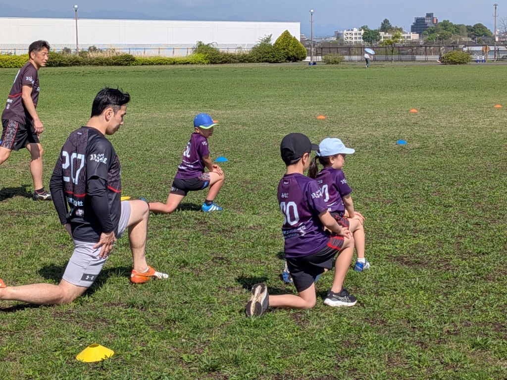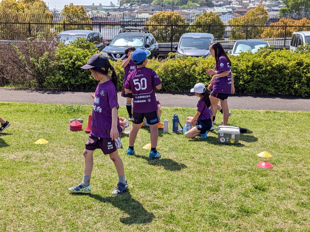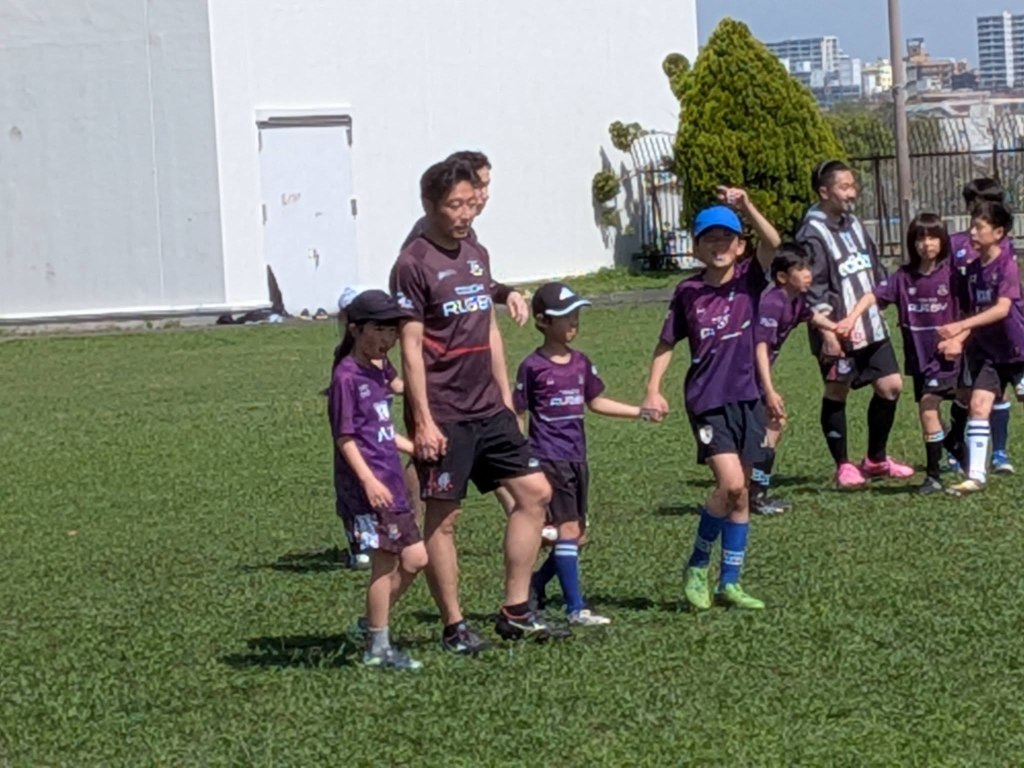 夜勤明けでも寝ないで練習に来てくれる亮さん。子供達の笑顔に癒されています。