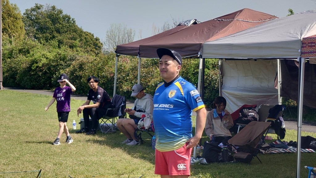 ※日差しが強くなってきているため、帽子やタープを活用し、体調管理にも気を配っています。