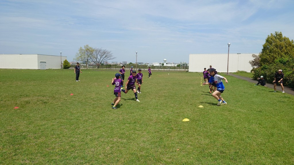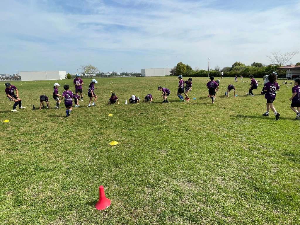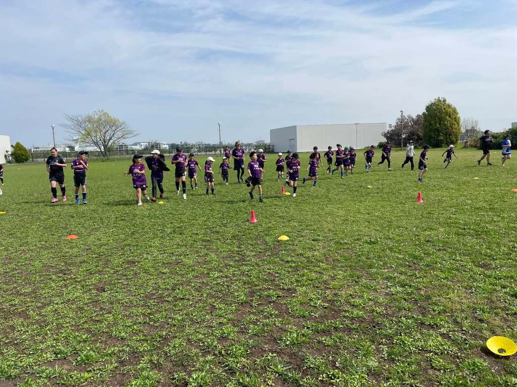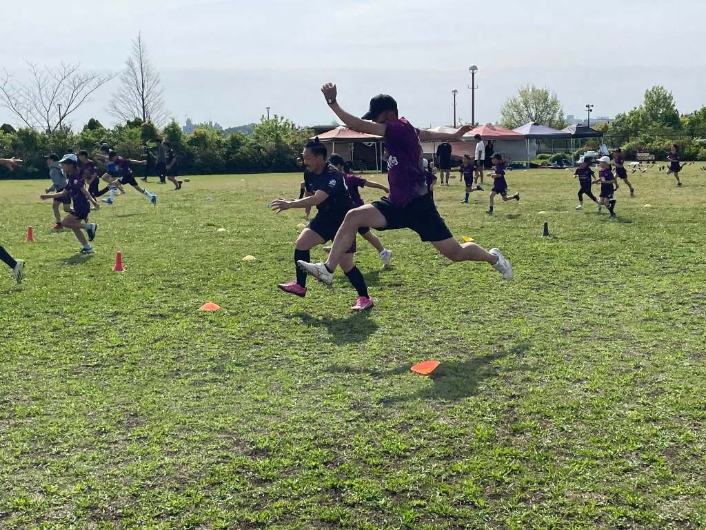 本日はグラウンドコンディションが良かったため、伏せた姿勢からのスタートも実施。起き上がる動作は全身の連動を促すため、非常に効果的です。